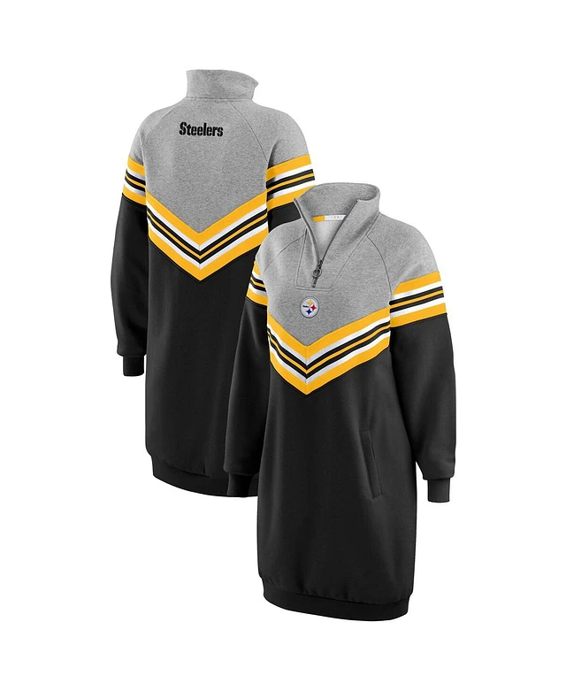 Wear by Erin Andrews Women's Black/Heather Gray Pittsburgh Steelers Chevron Stripe Dress