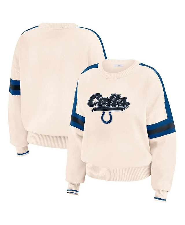 Wear by Erin Andrews Women's Cream Indianapolis Colts Stripe Pullover Sweater