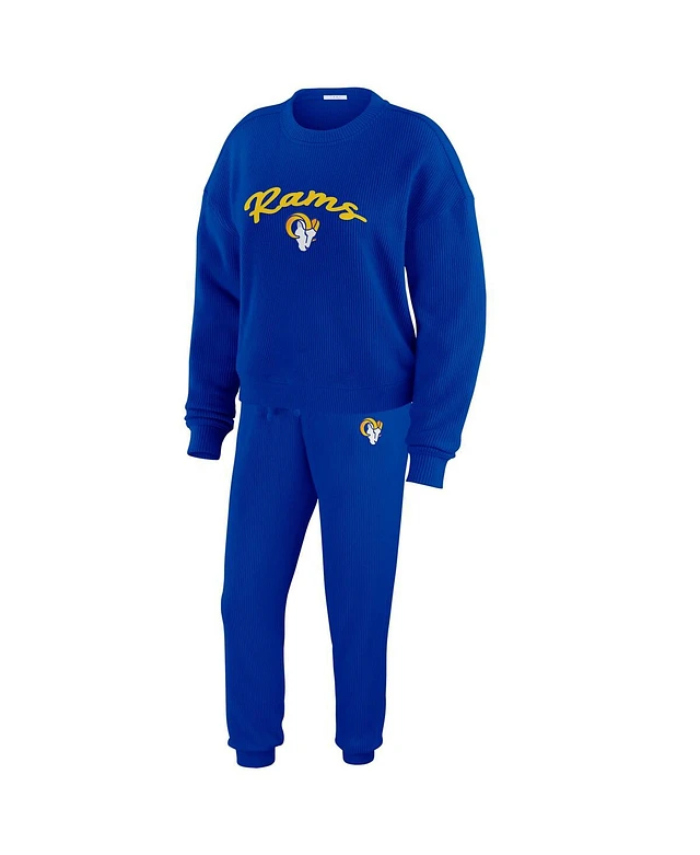 Women's Wear by Erin Andrews Royal Distressed Los Angeles Rams Waffle Knit Long Sleeve T-shirt and Shorts Lounge Set
