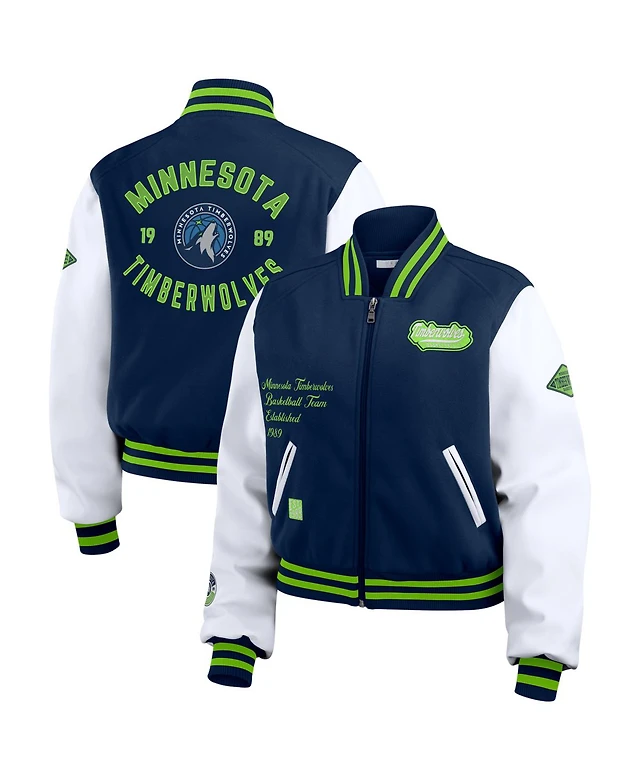 Wear by Erin Andrews Women's Navy/White Minnesota Timberwolves Cropped Varsity Full-Zip Jacket