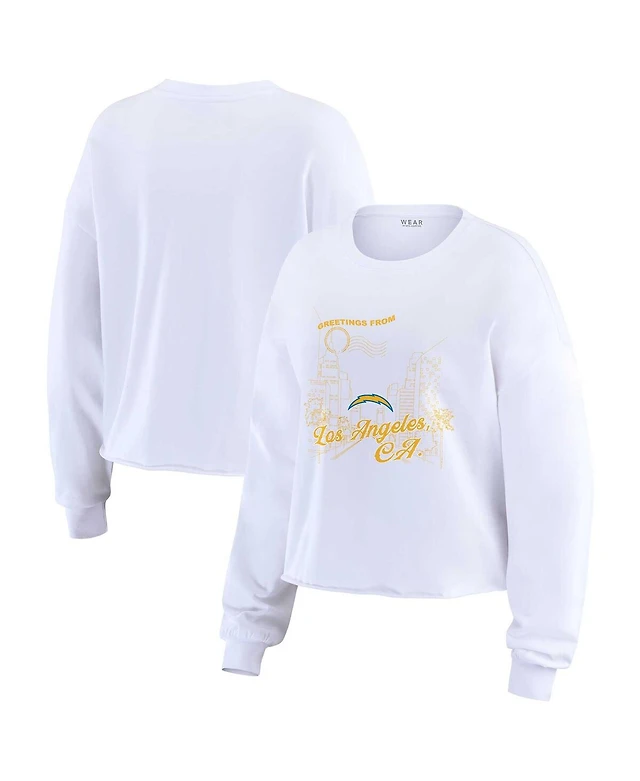 Wear by Erin Andrews Women's White Los Angeles Chargers Postcard Cropped Long Sleeve Top