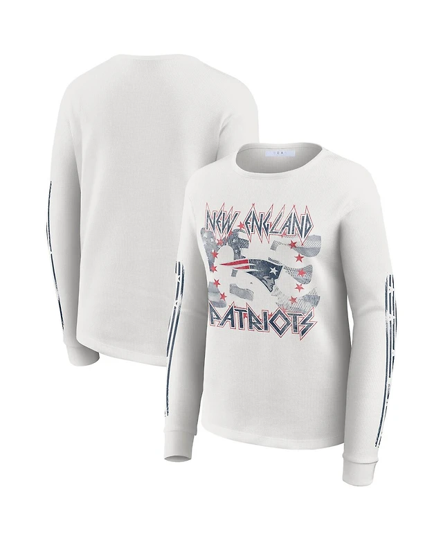 Wear by Erin Andrews Women's White New England Patriots Graphic Waffle Long-Sleeve T-Shirt