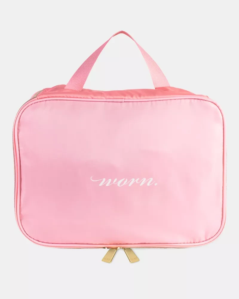 Where are you off to? Keep your laundry separate from your vacation OOTDs with these cheeky organizer. Our Wear/Worn bag streamlines your packing process, with a split-side design that keeps worn clothing in one zippered section and freshly-washed pieces in another.