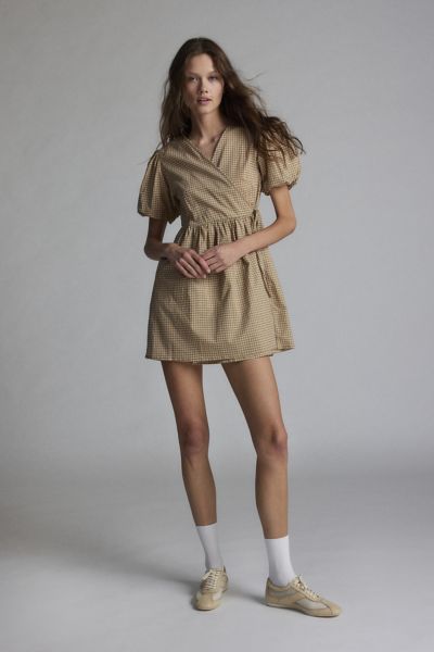 Motel Munasa One-Shoulder Drop Waist Gingham Mini Dress