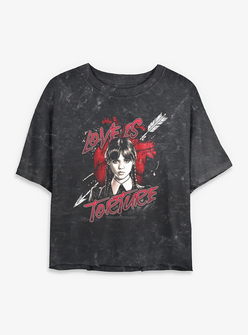 Wednesday Love Is Torture Womens Mineral Wash Crop T-Shirt