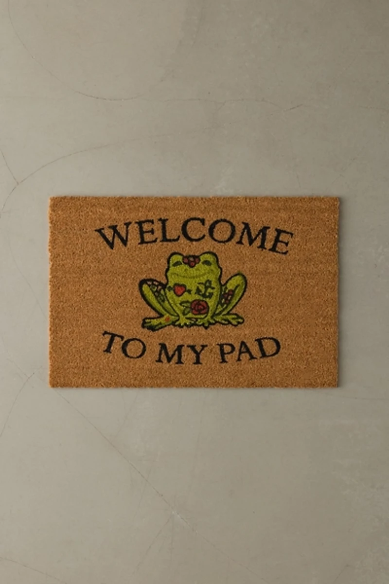 Welcome your best frogs to your pad with this coir welcome mat featuring a tatted frog motif. Available exclusively at Urban Outfitters.