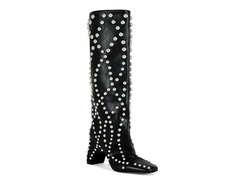 The Wells boot by Azalea Wang makes a bold statement with its tall shaft and distinctive studded design, perfect for adding edge to your off-duty wardrobe. This pull-on boot combines a sleek silhouette with a confident attitude, making it an ideal choice for nights out or turning heads on city streets. Comfortable enough to wear all day, it brings a touch of personality and flair to any look.