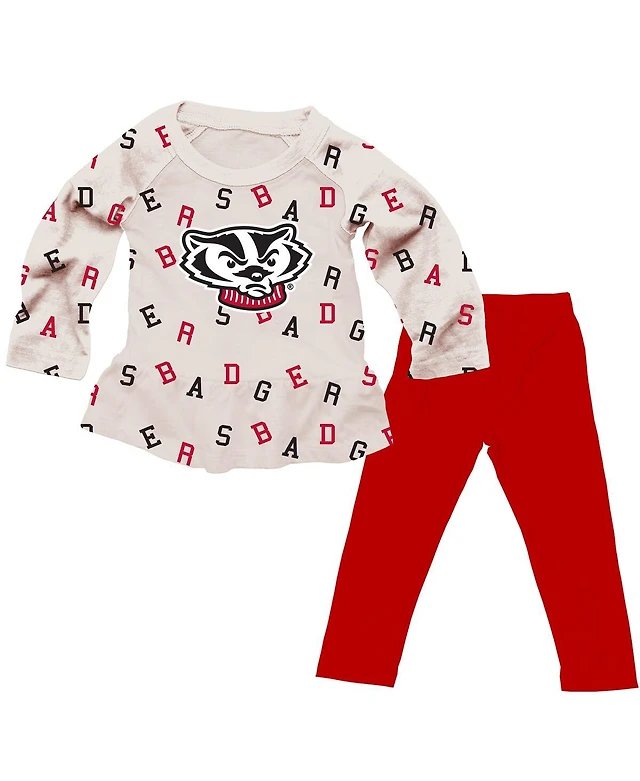 Wes & Willy Baby Girls 2-piece Oatmeal Wisconsin Badgers Ruffle Raglan Long Sleeve T-Shirt and Leggings Set