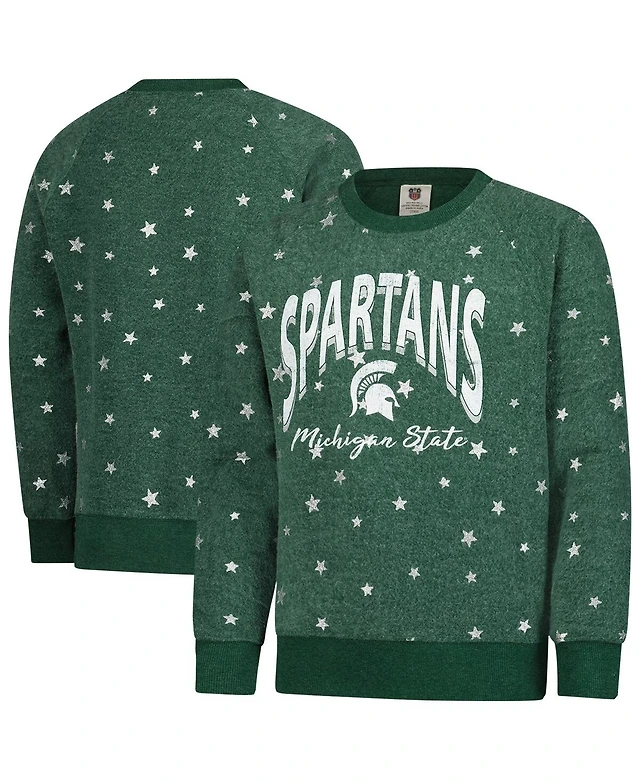 Wes & Willy Big Girls Green Michigan State Spartans Shimmer Star Reverse Sweatshirt