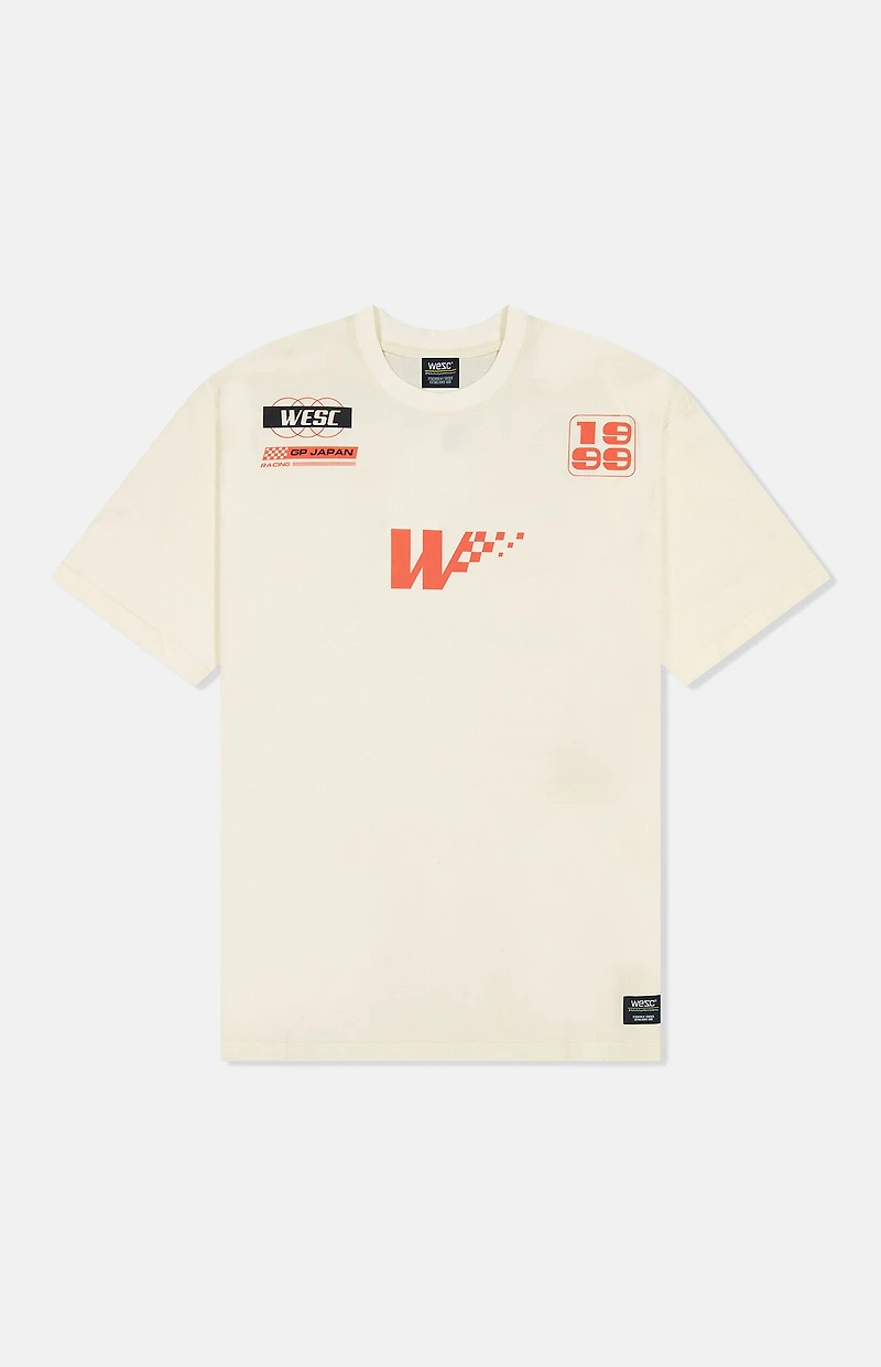 The WeSC Mason Distressed Motor Sport T-Shirt channels bold racing energy through a modern streetwear lens. Designed in an oversized fit, this short sleeve crewneck features a vintage wash finish and front and back distressed Motor Sport graphics for a worn-in, authentic edge. The self-fabric neckline keeps the look clean and minimal, while the signature WeSC exterior label adds the finishing touch. Made from 100% cotton, it combines comfort, durability, and standout styleperfect for pairing with denim, cargos, or sweats.