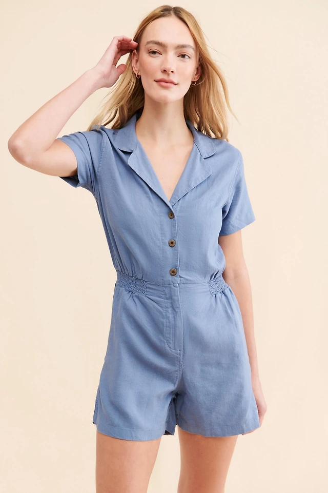 WeWoreWhat Camp Collar Linen Playsuit