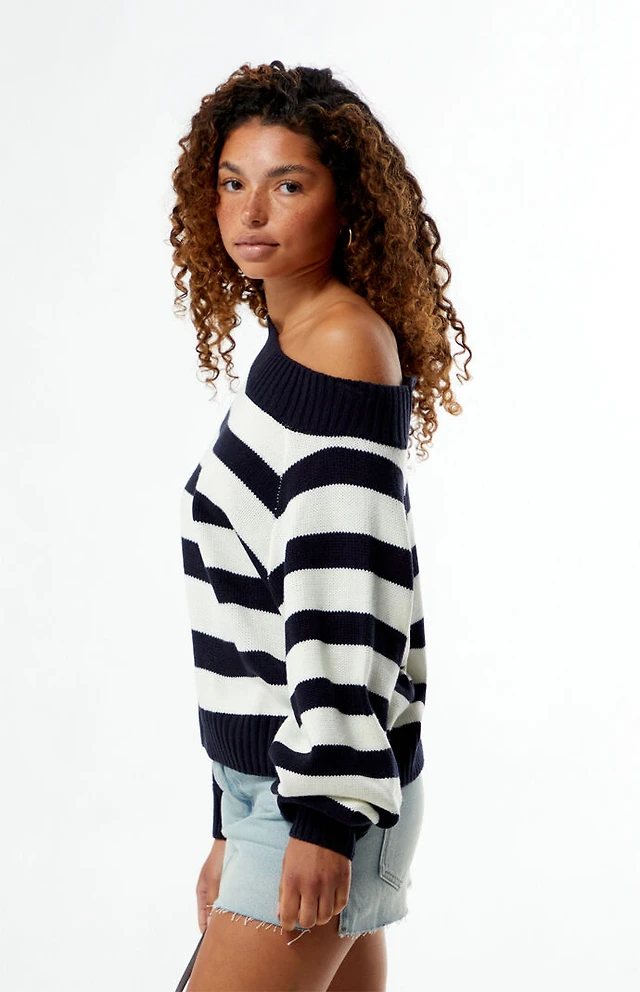 WEWOREWHAT Striped Sailor Off-The-Shoulder Bikini Top
