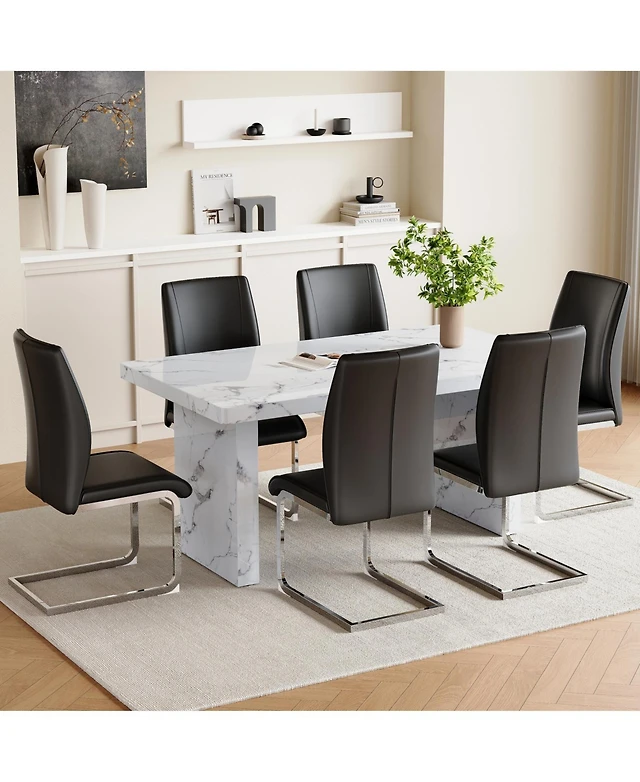 Streamdale Modern Marble Dining Set Table (55"x31.4") + 6 Black Pu Chairs