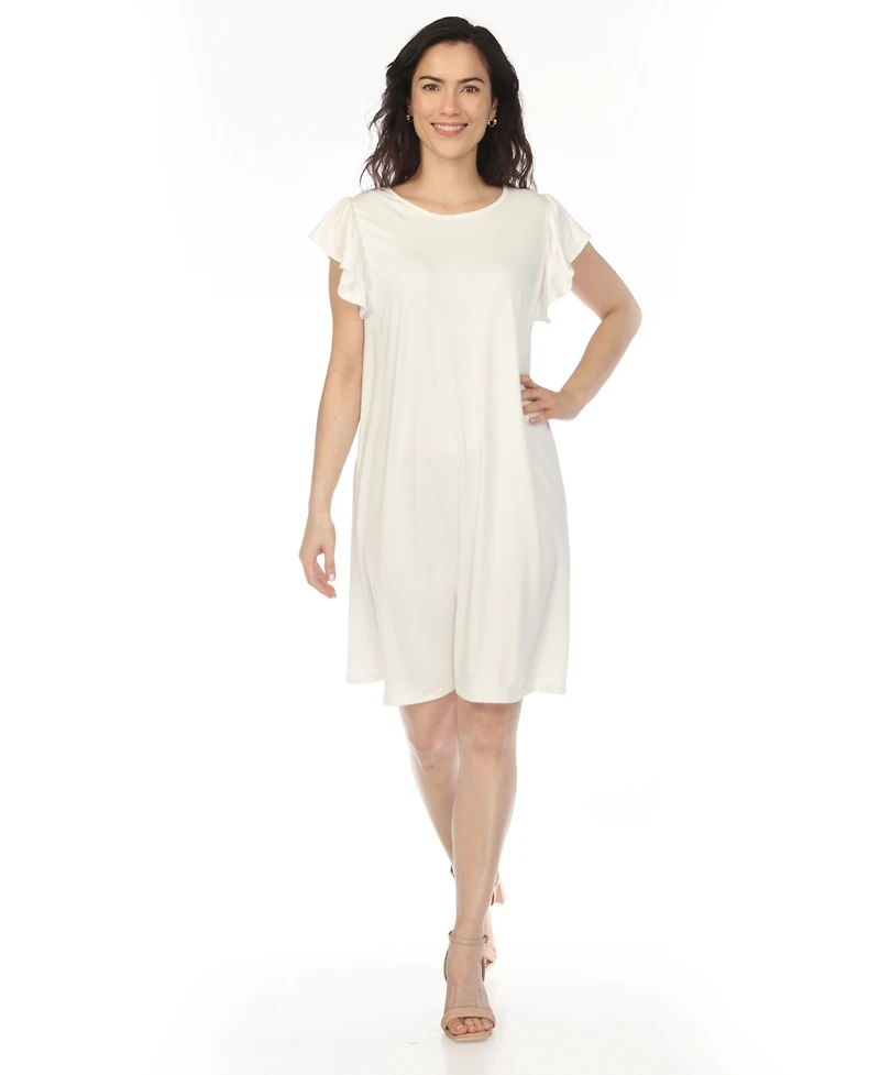 White Mark Women's Crew Neck Ruffle Sleeve Dress in Bloomington, MN