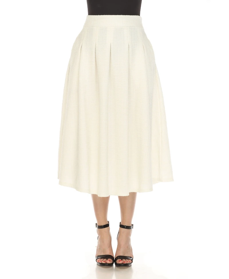 White Mark Women's Tweed Midi Skirt