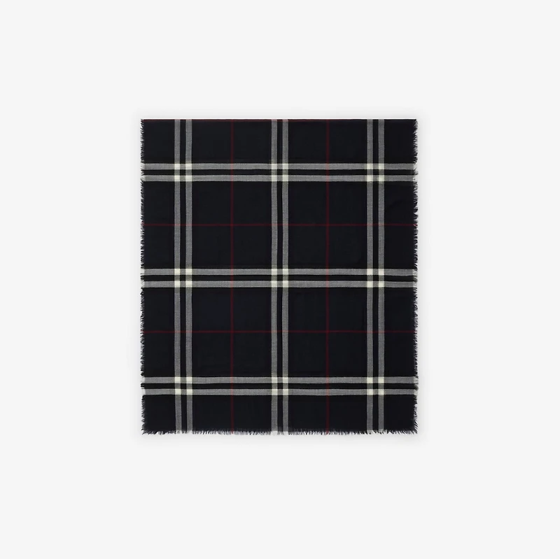 A lightweight wool scarf made in Italy. The design is woven with the Burberry Check. Rectangular Eyelash fringing at the edges