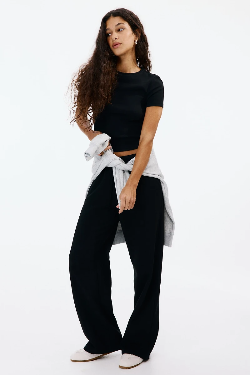 Loose-fit sweatpant joggers with a soft, brushed inside. Elasticized, drawstring waistband, discreet side-seam pockets, and wide legs.