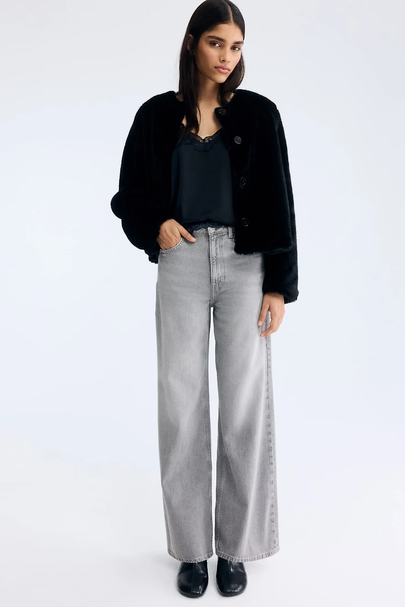 5-pocket jeans in rigid cotton denim that feels firm at first, softening and relaxing with wear. Regular fit from waist to hip and wide cut from thigh to hem. Extra-high waist and zip fly with button. Wide, regular-length legs, designed to fall at top of foot with little or no stacking. Featuring a wide silhouette that's always flattering.