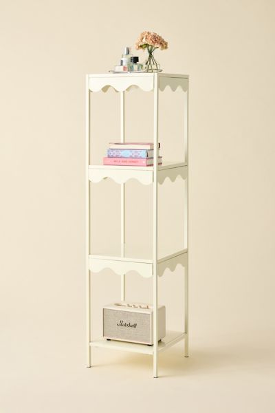 Refresh your storage essentials with this tiered storage shelf crafted from metal. Complete with statement color finishes, this unit features a trio of tiers in a modern cubic silhouette with wiggling, scalloped detailing framing each shelf. Modern storage shelf is perfect for storing your books, displaying your plants and showcasing your trinkets.