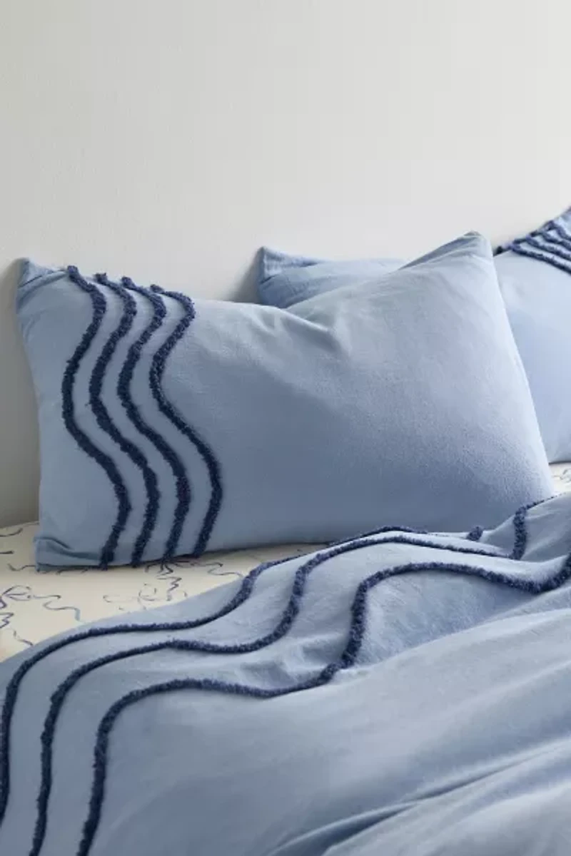 Add a playful layer to your bed with these gauzy cotton pillow shams featuring wiggling stripes tufted at the edges. Pair these pillow shams with our Wiggle Bordered Duvet Cover for a coordinated bedding look. Pilling and tufting fall out may occur over time due to natural wear. Available exclusively at Urban Outfitters.