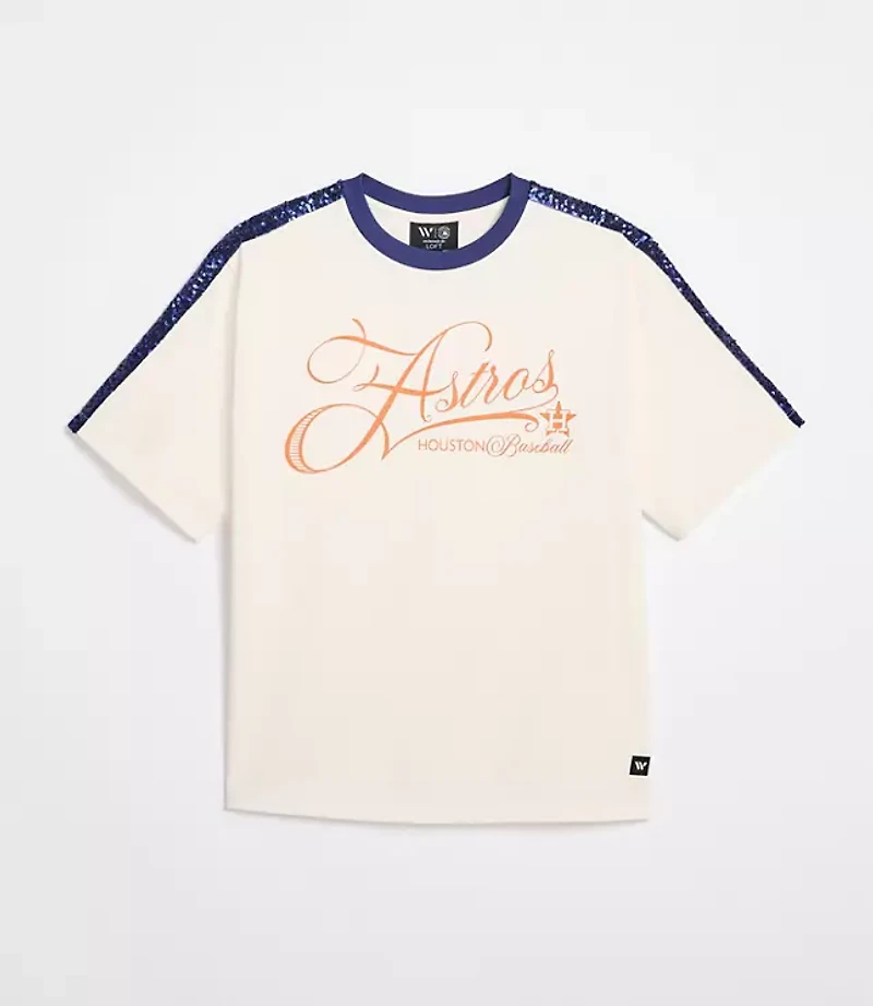 Introducing a collection of MLB styles from Wild Collective, made exclusively for LOFT. A laid - back take on Houston Astros style with this oversized tee designed for all - day ease. The relaxed silhouette pairs with feminine script graphics for a softer, more elevated feel. Finished with subtle trim detailing for an easy, polished look., Imported:, Fabrication: 80% Cotton 20 Polyester, Garment Care: Machine Washable Loft Wild Collective Astros Oversized T - Shirt Size XS Blue / White Women's by Loft Size Regular - XS Blue / White Women's Tops, Casual 80% Cotton 20% Polyester Machine Washable
