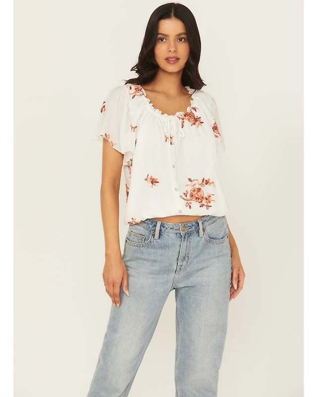 Wild Moss Women's Floral Off The Shoulder Tie-Front Top