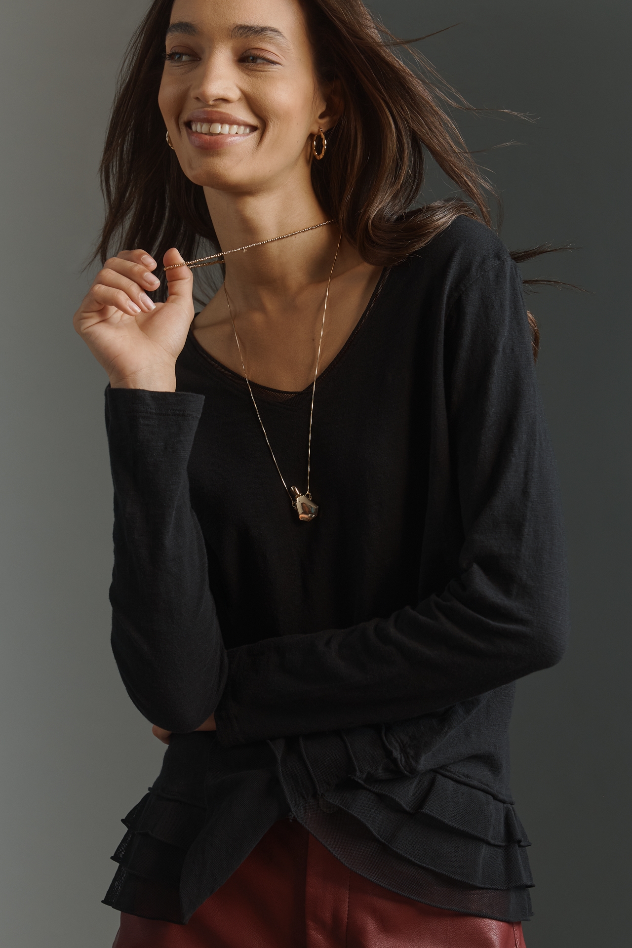 Wilt Long-Sleeve V-Neck Mixed Media Top