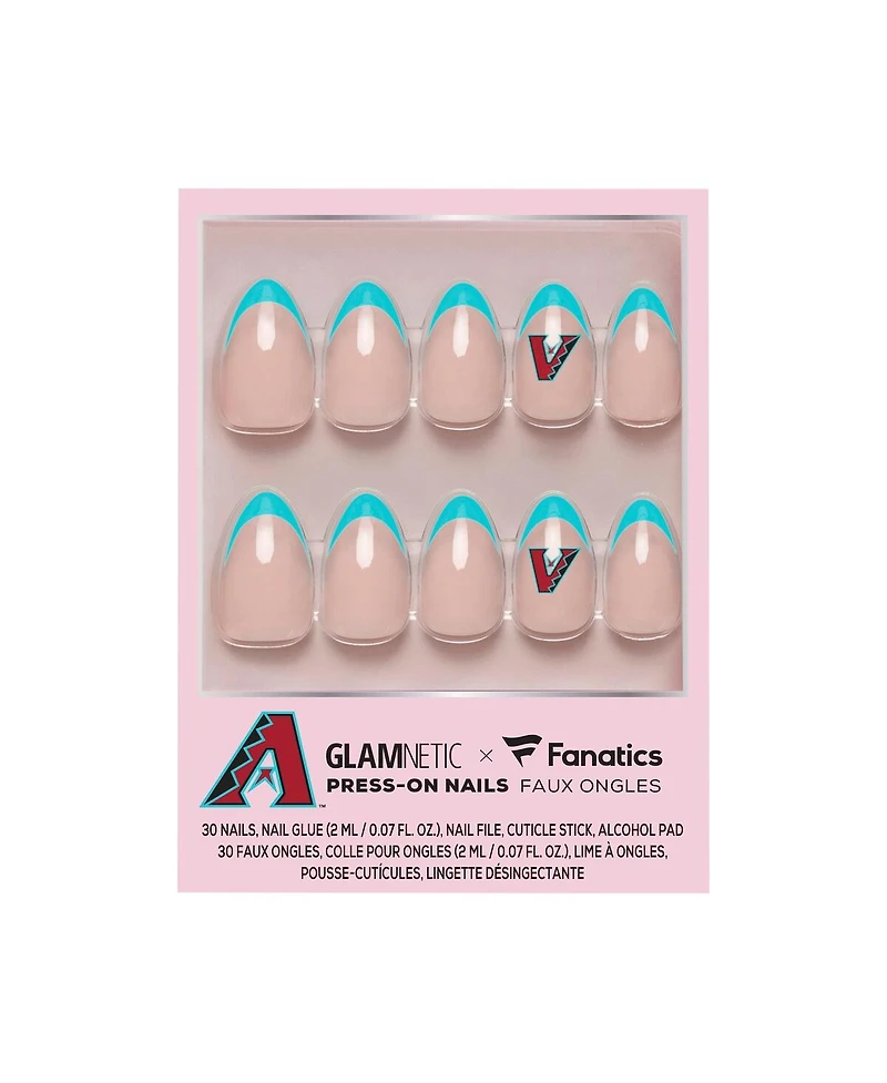 Serve major San Diego Padres pride with a glam twist. This Glamnetic x Fanatics Nail Kit features sleek almond-shaped nails with a glossy, semi-transparent finish that looks salon-fresh every time. Lightweight yet durable at approximately 0.57mm thick, each set is waterproof and designed to last up to two weeks per wear. This kit has everything you need for an easy, at-home application, including 30 nails in multiple sizes, nail glue, a file, a cuticle stick, and an alcohol prep pad. Game day just got a whole lot more polished.