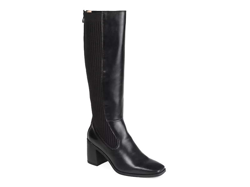 Take your everyday style up several notches in the Winny extra wide calf boot from Journee Collection. This tall boot includes a ribbed stretch knit panel for a flexible fit and finished with a modest block heel.
