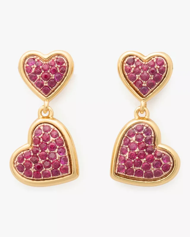 Kate Spade New York Two-Tone Cubic Zirconia Pave Double Heart Drop Earrings