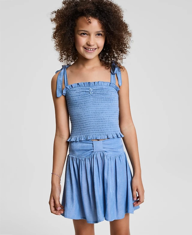 With Jules Big Girls Tie Shoulder Smocked Top Bow Waistband Skirt