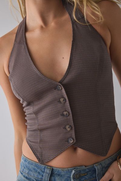 UO Esme Tailored Crop Halter Vest Top