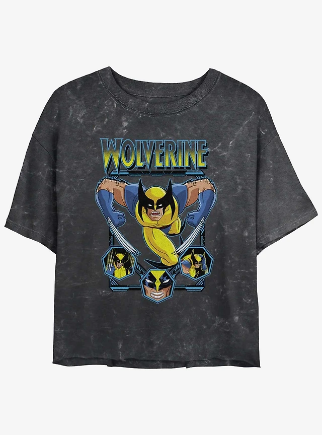 Marvel X-Men Vintage Wolverine Mineral Wash Crop Girls T-Shirt