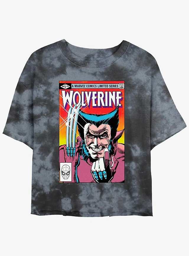 Wolverine Comic Cover Womens Tie-Dye Crop T-Shirt