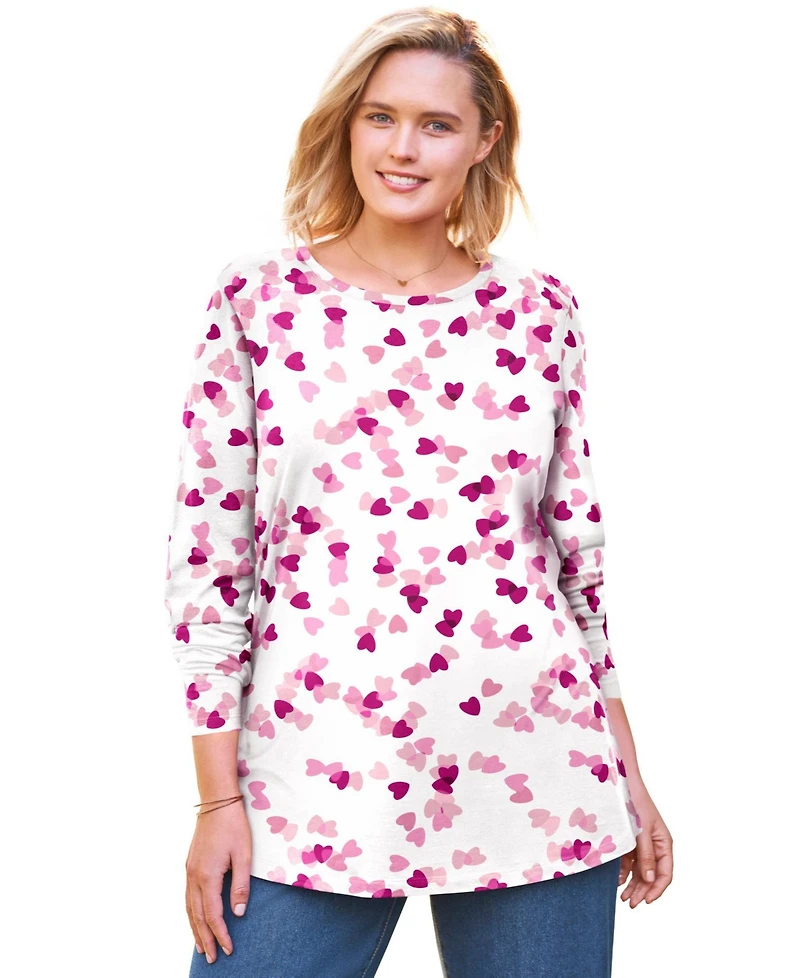Woman Within Plus Perfect Printed Long-Sleeve Crewneck Tee in Bloomington, MN