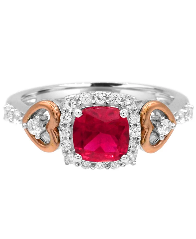 Sterling Silver 18k Rose Gold Plated with Red & Cubic Zirconia Pave Hearts Promise Adjustable Ring