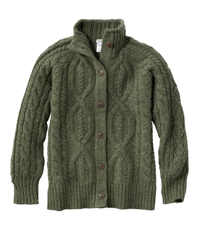 - Fisherman-inspired style with traditional cables and ribbed trim.