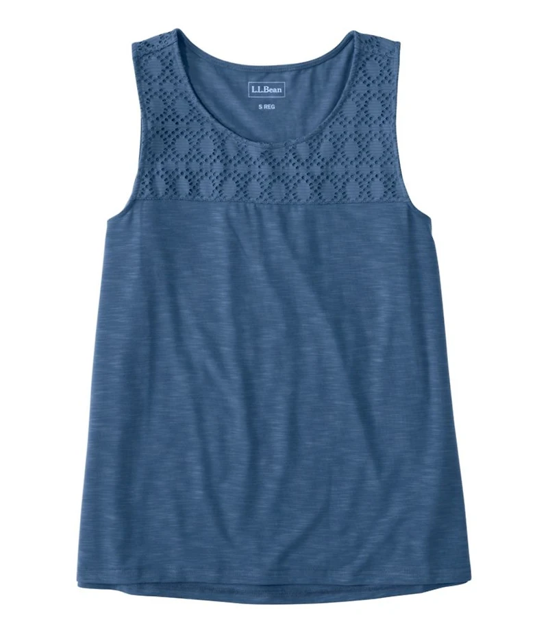 We've taken the essential tank top up a notch with a crocheted overlay, beautiful drape, soft texture and a relaxed, easy shape.