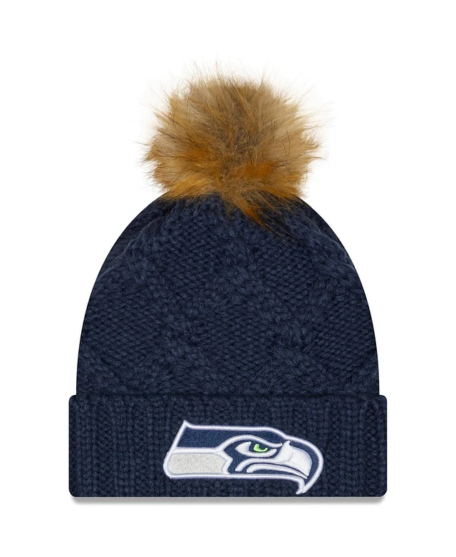 Women's College Navy Seattle Seahawks Luxe Cuffed Knit Hat with Pom