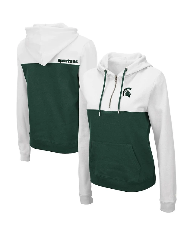 Women's Colosseum White, Hunter Green Michigan State Spartans Aidan Half-Zip Hoodie