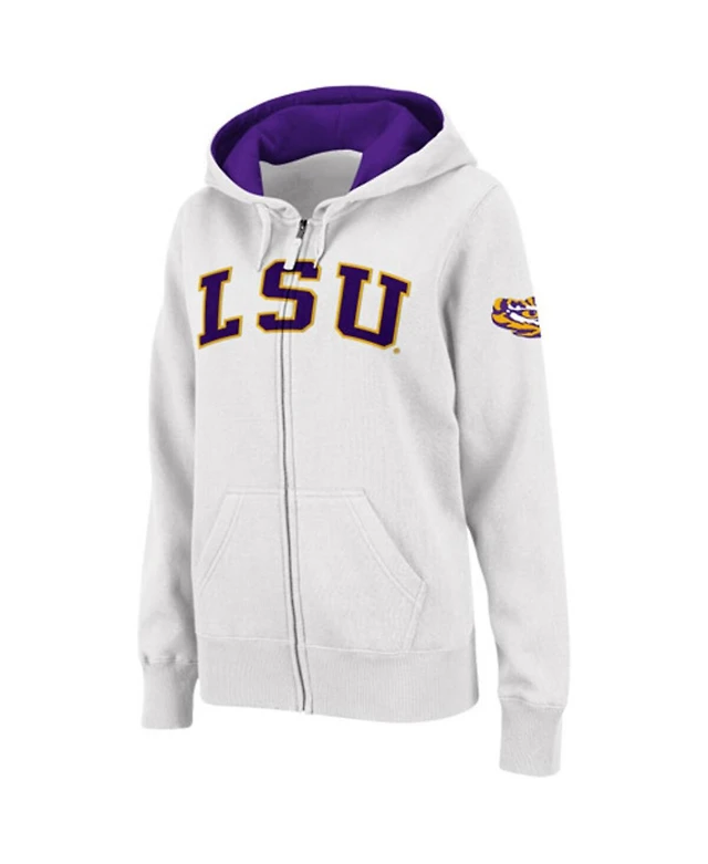 Women's Colosseum White Lsu Tigers Arched Name Full-Zip Hoodie