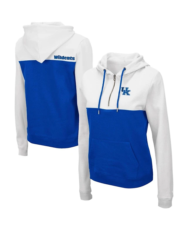 Women's Colosseum White, Royal Kentucky Wildcats Aidan Lightweight Quarter-Zip Hoodie