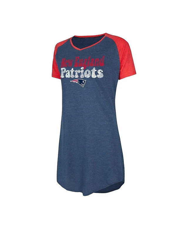 Women's Concepts Sport Navy, Red Distressed New England Patriots Raglan V-Neck Nightshirt