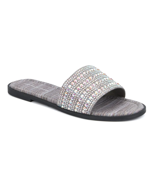 Journee Collection Womens Primah "H" Band Medium and Wide Width Slip On Flat Sandals