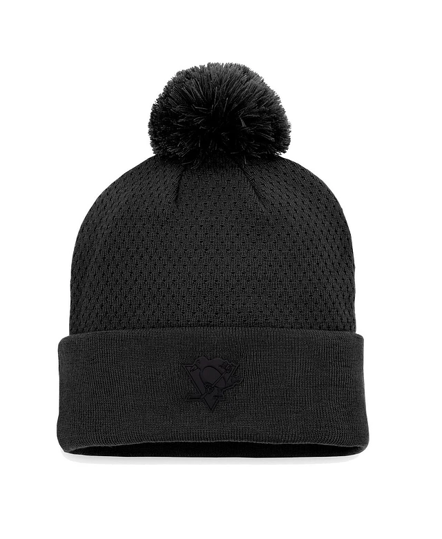 Women's Fanatics Black Pittsburgh Penguins Authentic Pro Road Cuffed Knit Hat with Pom