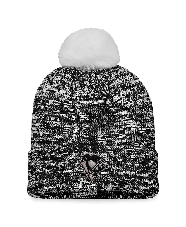 Women's Fanatics Black Pittsburgh Penguins Glimmer Cuffed Knit Hat with Pom