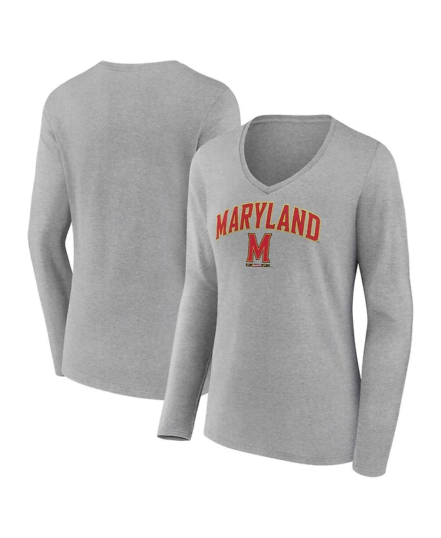 Women's Fanatics Heather Gray Maryland Terrapins Evergreen Campus Long Sleeve V-Neck T-shirt