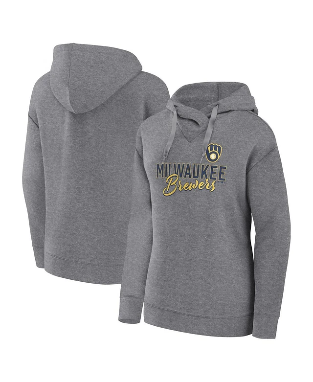 Women's Fanatics Heather Gray Milwaukee Brewers Script Favorite Pullover Hoodie