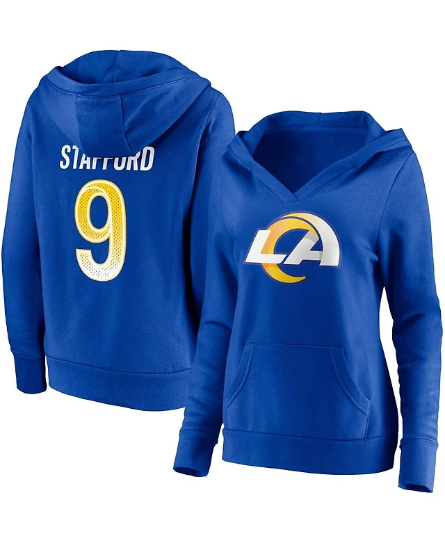 Women's Fanatics Matthew Stafford Royal Los Angeles Rams Player Icon Name and Number V-Neck Pullover Hoodie