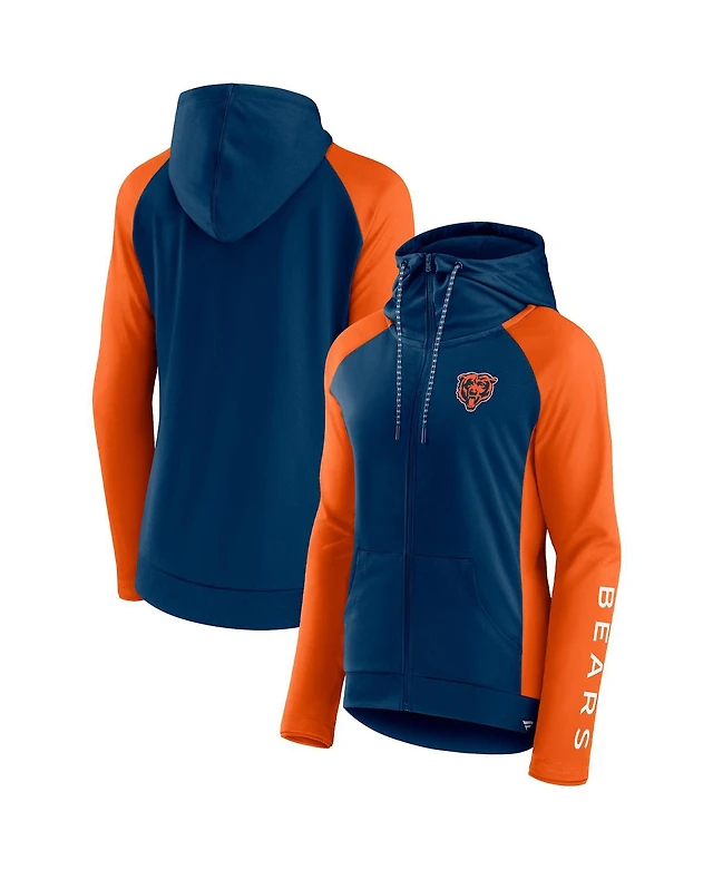 Women's Fanatics Navy, Orange Chicago Bears End Around Raglan Full-Zip Hoodie